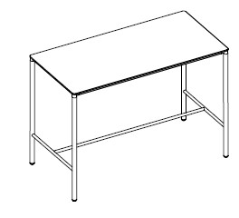 Высокий обеденный стол c фиксированной столешницей выполнен в современном стиле. Металлические ножки дополнены ламинированной столешницей.