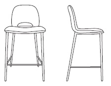 Барный стул на тонких металлических ножках выполнен в современном стиле. Оснащен подставкой для ног.