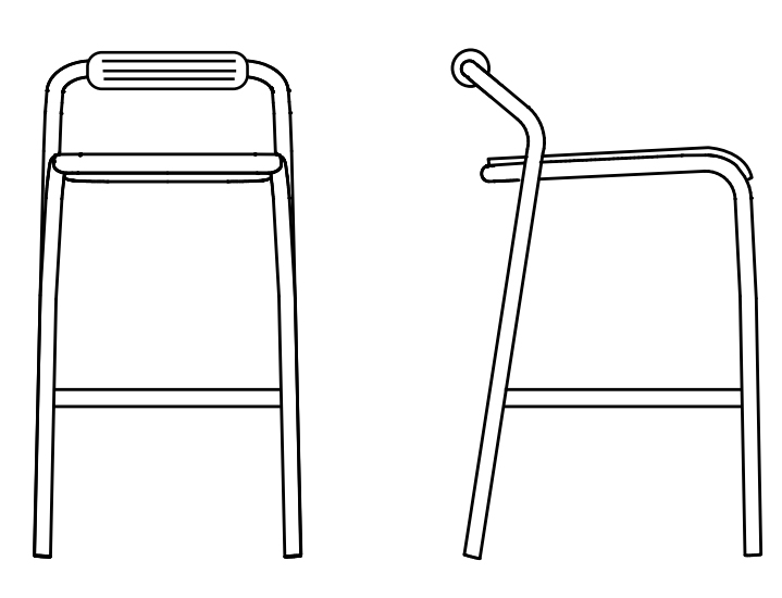 Барный стул имеет трубчатую структуру из алюминия и сидение из алюминиевого листа толщиной 15/10, порошковое покрытие. Подушка сидения и спинки имеет наполнение из резины Dryfeel. Все материалы прекрасно отводят влагу, что делает изделие подходящим для использования на открытом воздухе. Стул штабилируется.