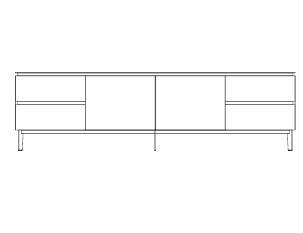 Буфет выполнен в современном стиле. Каркас изготовлен из массива дерева. Буфет оснащен двумя распашными дверками и четырьмя выдвижными ящиками. Внутри отделений с дверками по одной стеклянной полке.