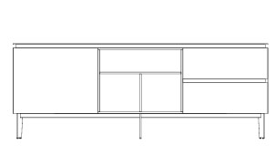 Буфет выполнен в современном стиле. Каркас изготовлен из массива дерева. Буфет оснащен распашной дверкой, двумя выдвижными ящиками и открытыми полками. Внутри каждого отделения одна стеклянная полка.