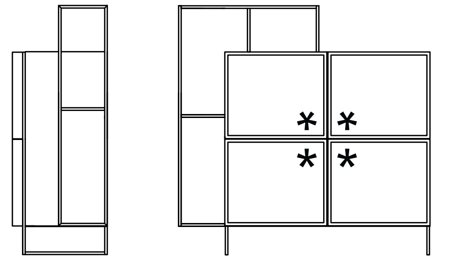 Буфет имеет четыре дверки, которые оснащены петлями с доводчиком, что обеспечивает их плавное закрытие. По левую сторону дополнен металлическим стеллажом, выполненным в цвет ножек.