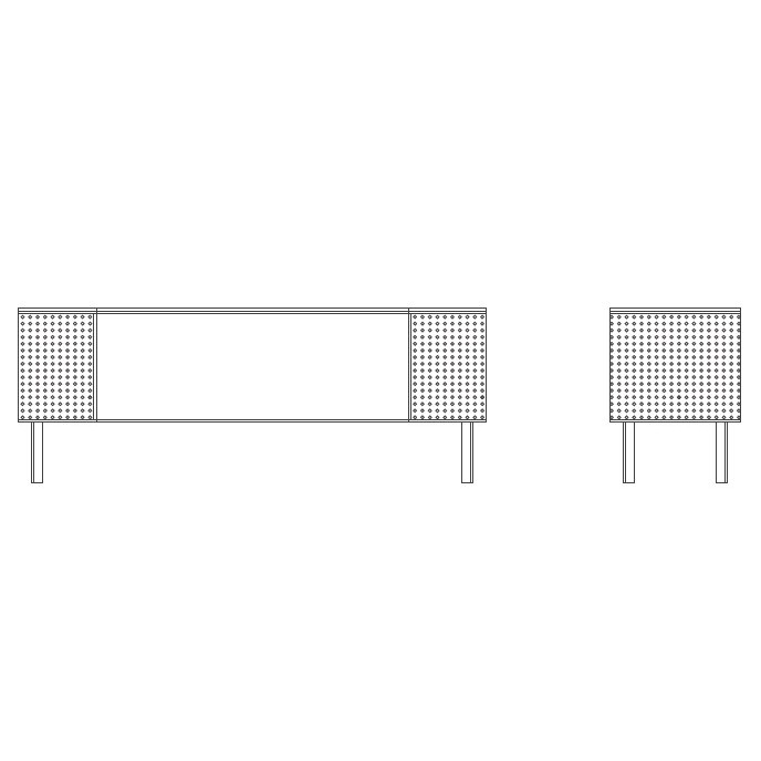 Буфет Solanas изготовлен из сваренных вручную алюминиевых профилей с порошковым покрытием и листового металла с микроперфорацией, которые доступны в разных цветах.