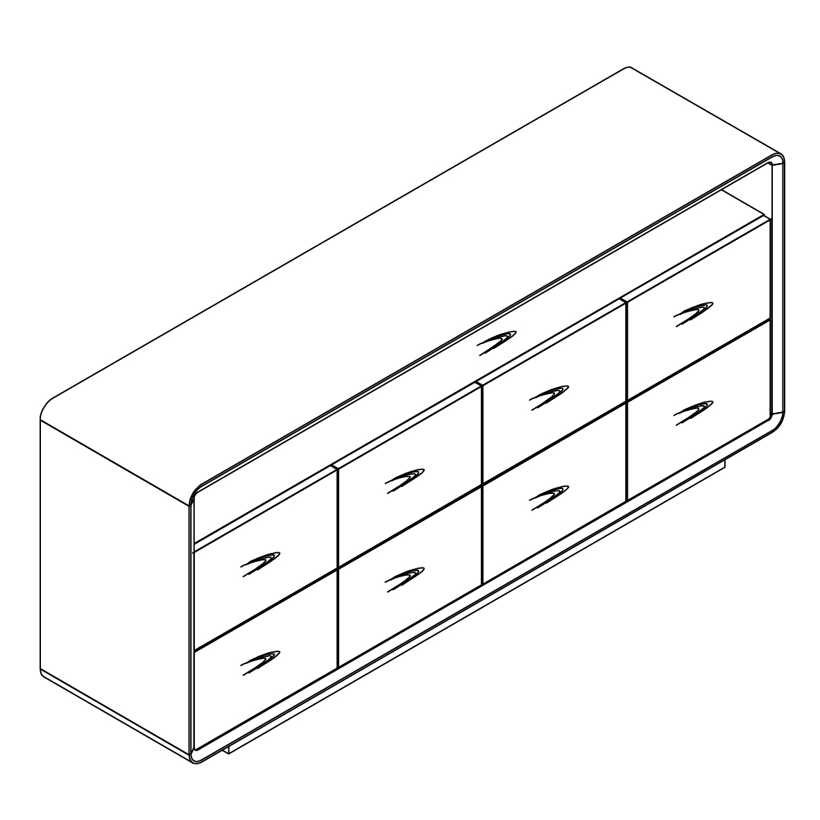 Буфет с восьмью выдвижными ящиками, что делает его максимально удобным в использовании.