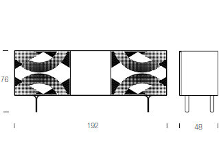 Буфет на прямых металлических ножках выполнен в стиле модерн. Оснащен двумя дверцами с декоративным орнаментом на фасадах и ящиком. Внутри стеклянные полки.