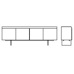 Буфет с четырьмя лакированными дверками на металлическом основании дополнен топом из рельефного стекла.