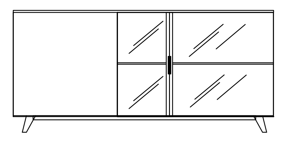 Буфет выполнен в современном стиле. Имеет одну деревянную дверцу и две стеклянные дверцы.