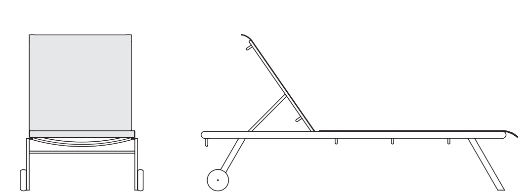 Шезлонг имеет металлический каркас. Использована высококачественная ткань. Имеет колесики для удобства перемещения. Все материалы прекрасно отводят влагу, что делает изделие подходящим для использования на открытом воздухе.