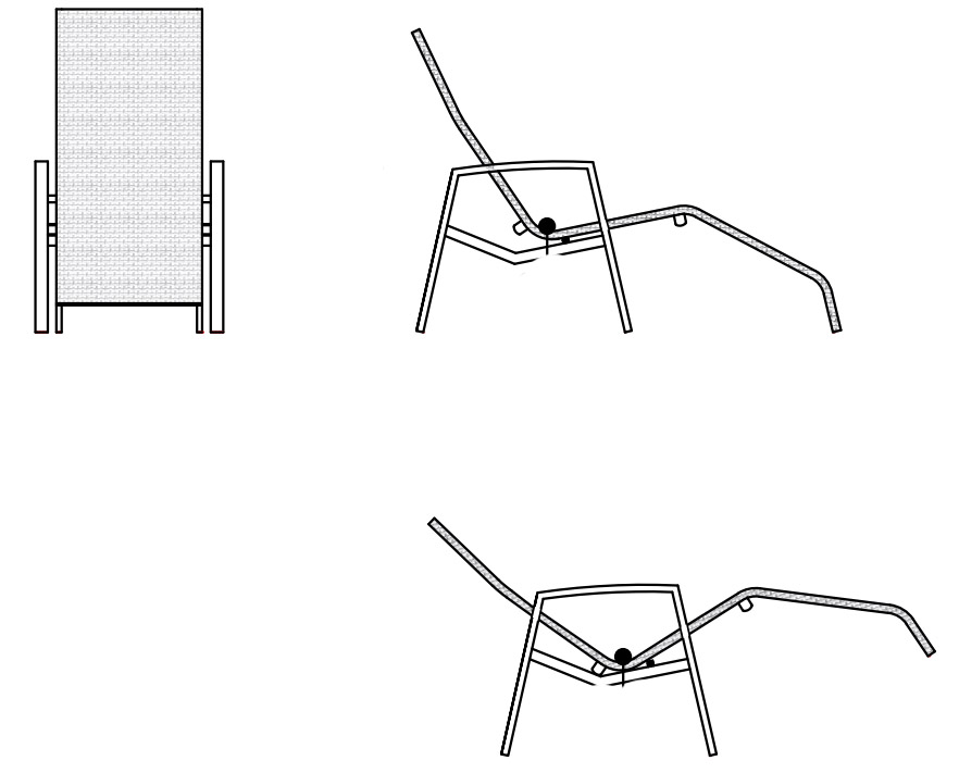 Шезлонг имеет каркас из алюминия с порошковым покрытием. Сидение и спинка выполнены из материала batyline (техническая ткань из ПВХ). Штабелируется. Все материалы прекрасно отводят влагу, что делает изделие подходящим для использования на открытом воздухе.