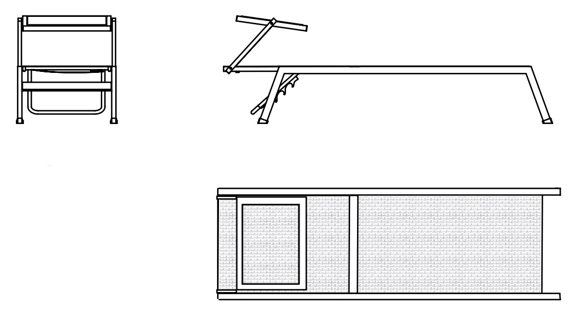 Шезлонг имеет каркас из алюминия с порошковым покрытием. Сидение и спинка выполнены из материала batyline (техническая ткань из ПВХ). Штабелируется. Оснащен шторкой-защитой от солнца. Все материалы прекрасно отводят влагу, что делает изделие подходящим для использования на открытом воздухе.