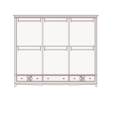 Шкаф-купе на ножках выполнен в классическом стиле из массива тюльпанного дерева и многослойной древесины танганьики. Оснащен тремя дверцами купе с зеркалом и тремя выдвижными ящиками. Фасады декорированы резьбой.