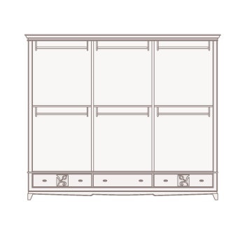 Шкаф-купе на ножках выполнен в классическом стиле из массива тюльпанного дерева и многослойной древесины танганьики. Оснащен тремя дверцами купе с зеркалом и тремя выдвижными ящиками. Фасады декорированы резьбой.