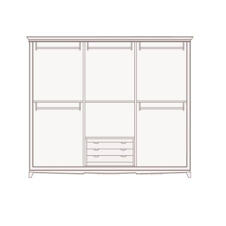 Шкаф-купе на цоколе выполнен в классическом стиле из массива тюльпанного дерева и многослойной древесины танганьики. Оснащен тремя дверцами купе. Фасад декорирован резьбой.