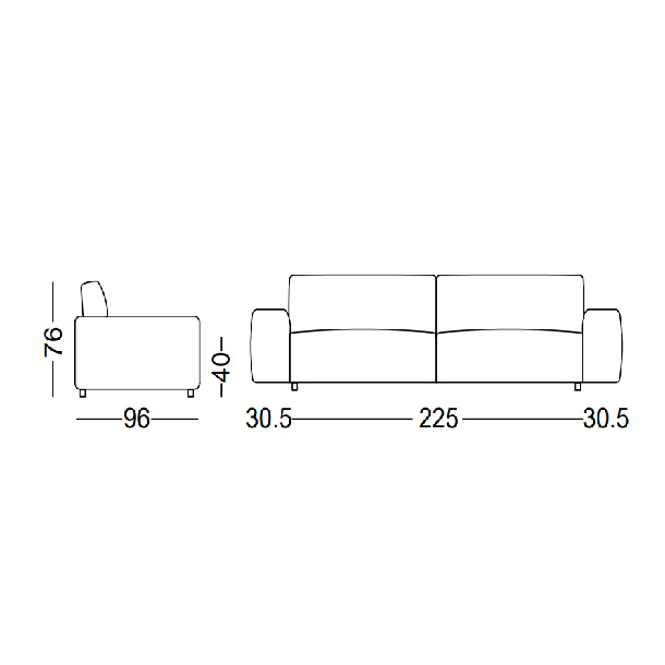 Наполнитель сидения ППУ плотностью 30 кг/м3, спинка 25 кг/м3. Ножки изготовлены из стали. Диван обит полностью съемными тканевыми чехлами. Фабрика предлагает большой ассортимент тканей и кожи. При заказе дивана в отделке кожей чехлы частично съемные.