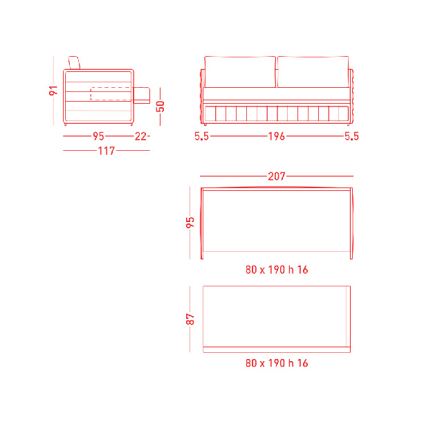Размер спального места 80*190*16