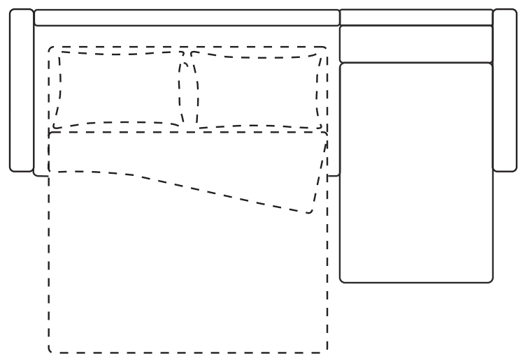 Диван-кровать оснащен удобной полочкой, расположенной в районе левого подлокотника. Правый модуль-оттоманка имеет внутри отсек для хранения.