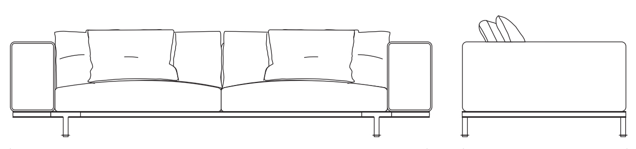Диван имеет каркас из алюминия с порошковым покрытием, база декорирована вставками из древесного материала Accoya. Наполнение подушек - синтетический полиуретан. В качестве обивки использована высококачественная ткань. Все материалы прекрасно отводят влагу, что делает изделие подходящим для использования на открытом воздухе.