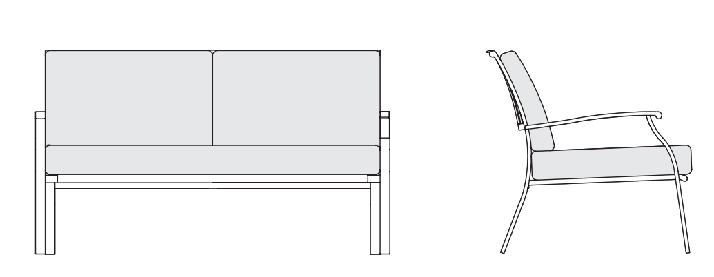 Диван имеет металлический каркас. Наполнение подушек - синтетический полиуретан. В качестве обивки использована высококачественная ткань. Все материалы прекрасно отводят влагу, что делает изделие подходящим для использования на открытом воздухе.