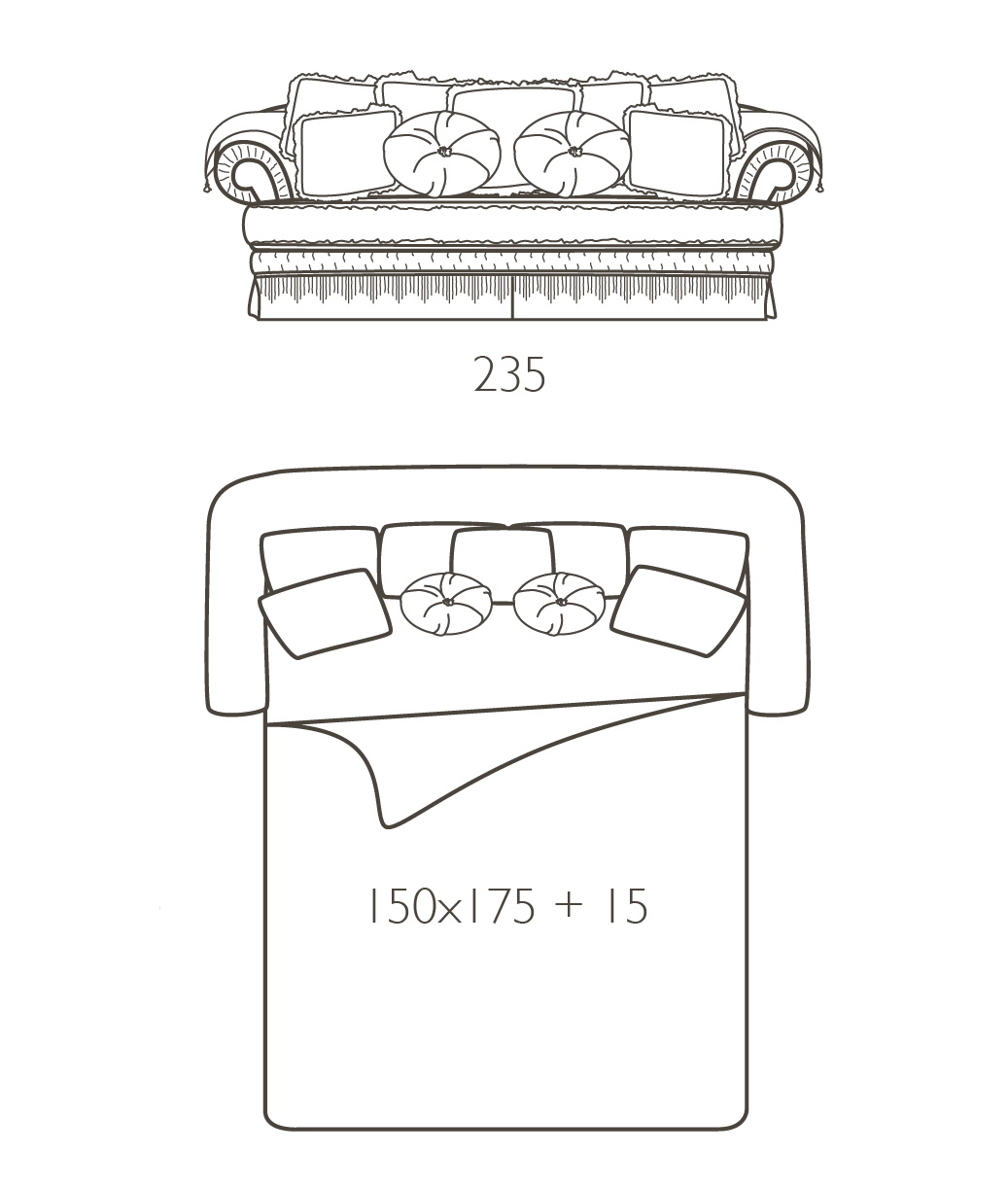 Диван с съемными чехлами выполнен в классическом стиле. Каркас из многослойной фанеры из тополя. Набивка из недеформируемого пенополиуретана. Двусторонняя подушка сиденья с набивкой из гусиного пуха и пружинами с системой Super-Soft-System.