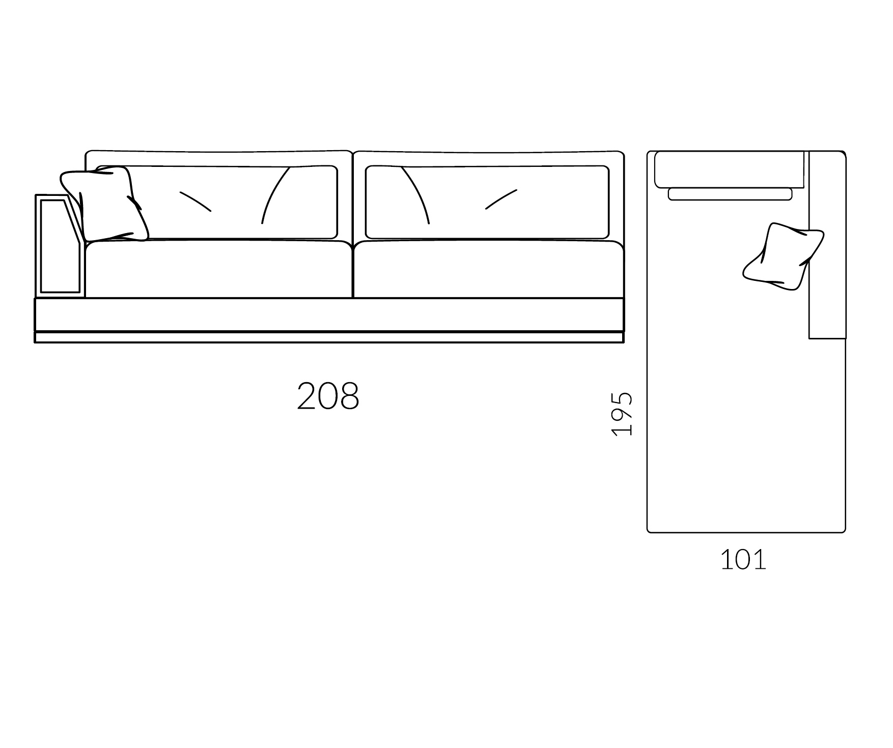 Модульный диван с широкими подлокотниками выполнен в современном стиле из сосны и многослойной древесины тополя. Основание и подлокотники декорированы стежкой.