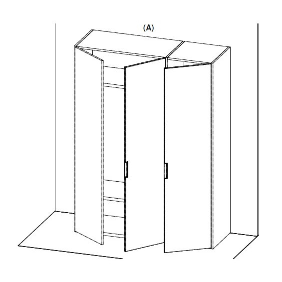 Гардероб с тремя распашными дверками изготовлен из высококачественного ламинированного МДФ. Дверки с интегрированными ручками оборудованы петлями с доводчиком.