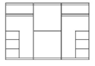 Гардероб оснащен двумя зеркальными и четырьмя деревянными дверками. Внутреннее наполнение три полки, две перегородки с полками и пять штанг для одежды.