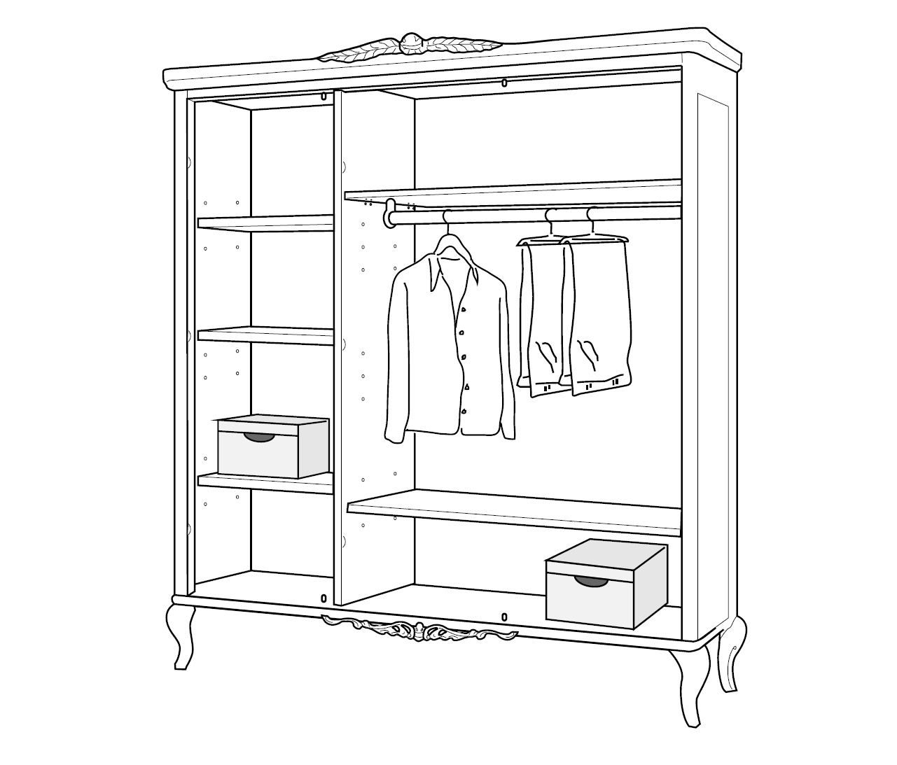 Внутреннее наполнение - 1 штанга, 3 полки маленьких, 2 полки больших.