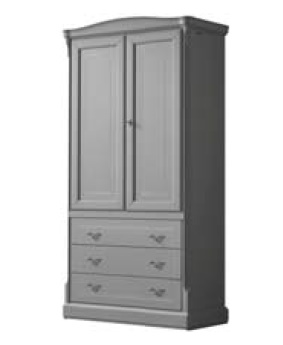 Гардероб с двумя дверками и тремя выдвижными ящиками выполнен в классическом стиле. Оригинальность модели резными элементами. Дверки гардероба закрываются на ключ.