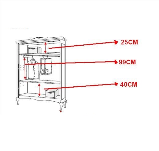 Гардероб с двумя дверками выполнен в классическом стиле. Опирается на ножки кабриоли, нижняя часть царги украшена декоративным резным элементом. Декоративная фурнитура - металл.