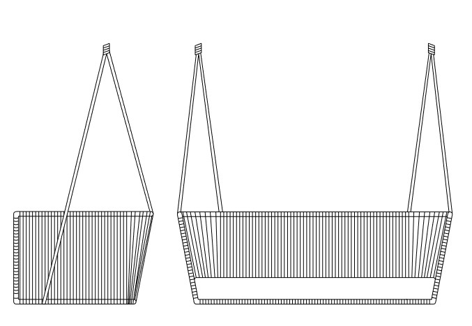 Качели изготовлены из плетеной ткани из полиэстра и полипропилена, устойчивой к воздействию окружающей среды. Сидение и спинка дополнены мягкими подушками из водоотталкивающей ткани.