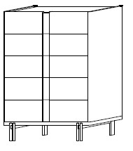 Комод высокий с пятью выдвижными ящиками и металлическими ножками. Ящики снабжены системой легкого открывание push to open.