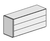 Комод на цоколе выполнен в современном стиле. Оснащен тремя ящиками с контрастной боковой панелью.