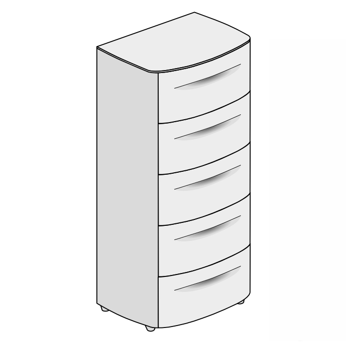 Комод от итальянской фабрики Tomasella. Модель в лакированной отделке оснащена пятью выдвижными ящиками. Закругленные углы, элегантно вырезанные на фасаде ручки, округлые боковые стороны создают изящный силуэт в современном стиле.