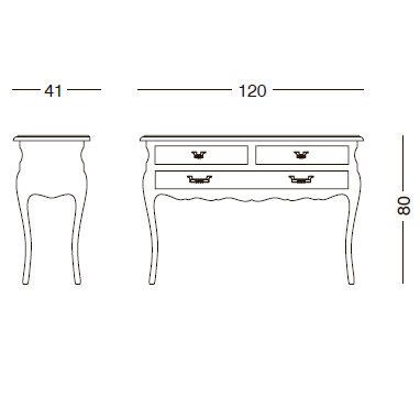 Консоль на изогнутых ножках выполнена в классическом стиле. Оснащена тремя ящиками разного размера. Гнутые фасады подчеркивают изящность модели.