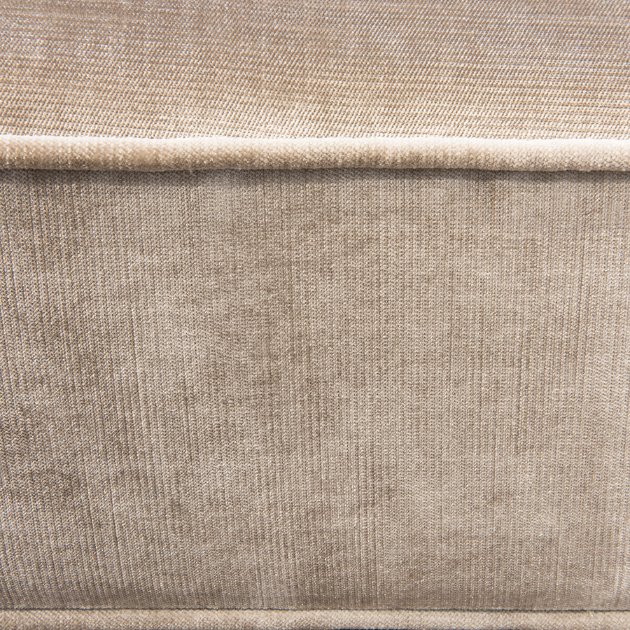 Каркас — натуральный массив дерева, отделка — натуральный шпон вишни, обивка — серебристо-серый велюр. Спинка декорирована стежкой капитоне. Вокруг ножек — декоративное обрамление металлическими гвоздиками.