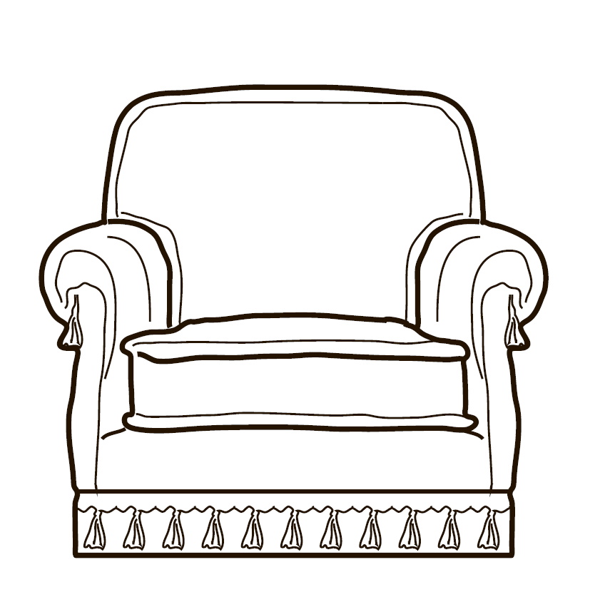 Кресло выполнено в классическом стиле. Декорировано кантом и кисточками.