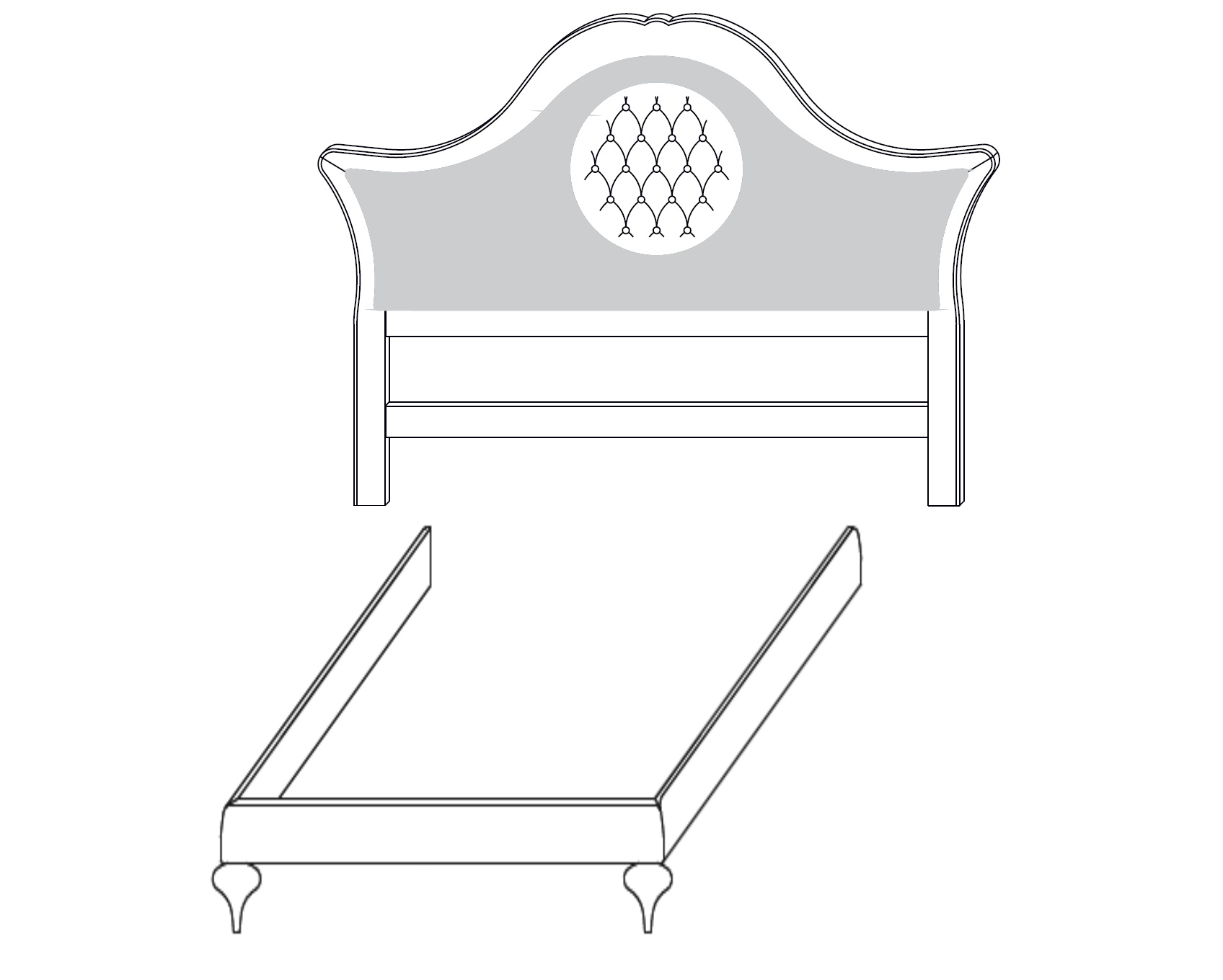 Кровать на фигурных ножках выполнена в стиле Ар деко. Оригинальность модели обусловлена фигурным изголовьем с капитоне.
