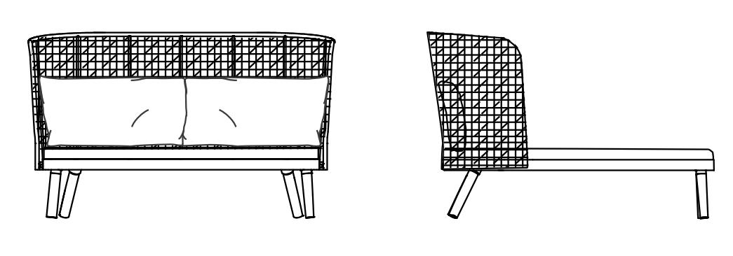 Кровать Emma имеет каркас из алюминия. Ножки - окрашенный алюминий. Сидение обтянуто тканевой обивкой с наполнением из резины Dryfeel. Спинка имеет раму из алюминия с порошковым покрытием, декорирована красивым перпендикулярным плетением. Все материалы прекрасно отводят влагу, что делает изделие подходящим для использования на открытом воздухе. Тканевые чехлы съемные. В комплект входит одна подушка сидения и две декоративные подушки под спину (65*55см).