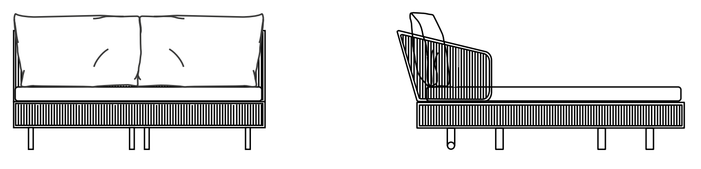 Кровать имеет каркас из алюминия с порошковым покрытием. Спинка украшена плетением ручной работы. Сидение обтянуто тканевой обивкой с наполнением из резины Dryfeel. Все материалы прекрасно отводят влагу, что делает изделие подходящим для использования на открытом воздухе. Тканевые чехлы съемные. В комплект входит одна подушка сидения, две декоративные подушки под спину (70*55см). Две ножки имеют встроенные колесики для удобного перемещения кровати.