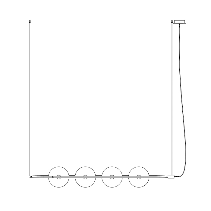 Элегантный современный дизайн, воплощенный в стальной конструкции в отделке матовая латунь, дополненной четырьмя плафонами из белого матового стекла на подвесе.