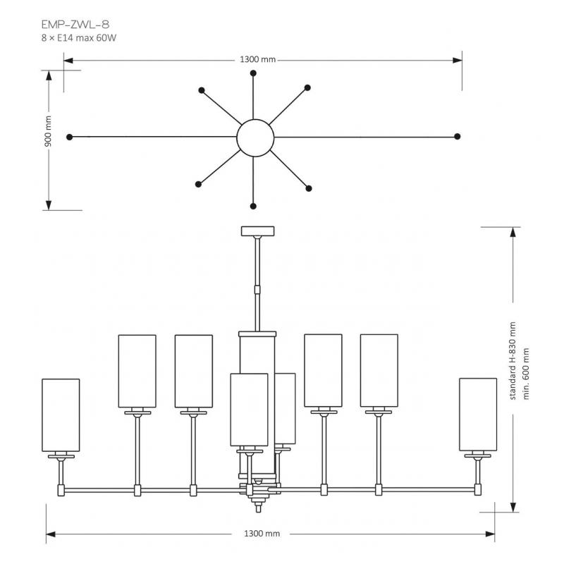 Светильник Empoli люстра, 8 рожков, Kutek mood, золото Абажур к светильнику 21-8, EMP-ZW-8 (Z) KU.L-3.KT.507