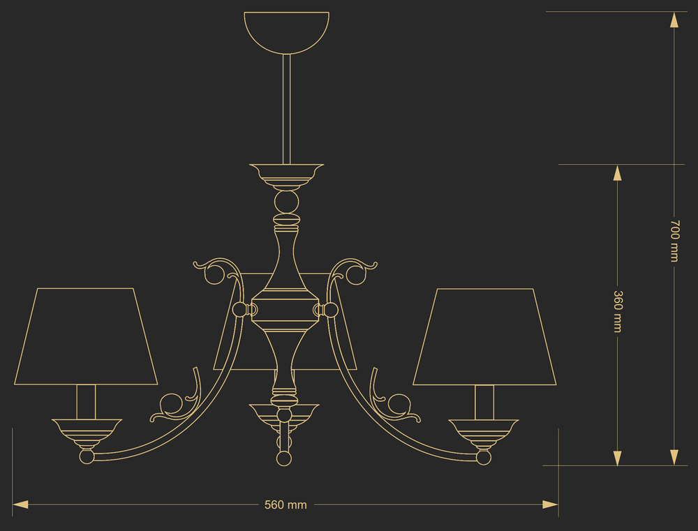 Подвесная люстра выполнена в классическом стиле. Витое основание с нежнейшими завитками и резьбой на латунном основании дополнено нежными абажурами. Функциональная и изящная модель станет достойным дополнением интерьера. Рассчитана на три лампы.