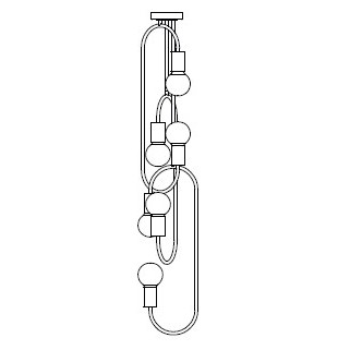Люстра на круглом основании выполнена в современном стиле из кованого металла. Гнутые пластины дополнены выпуклыми плафонами. Оригинальная модель сочетает в себе несколько люстр на едином основании.