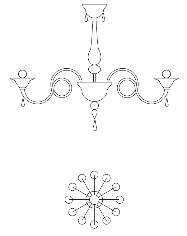 Люстра на двенадцать ламп выполнена в классическом стиле.