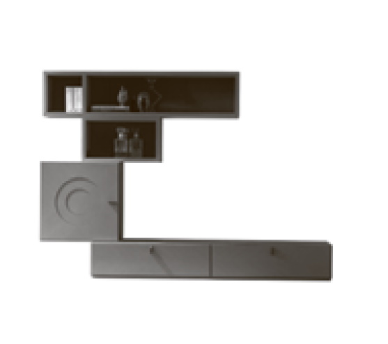 Модульная стенка, являющаяся частью этой коллекции, выполнена из многослойной древесины ели в шпоне ясеня. В отделке использован экологичный двухкомпонентный акриловый лак Grigio chiaro, не придающий мебели желтизны.
