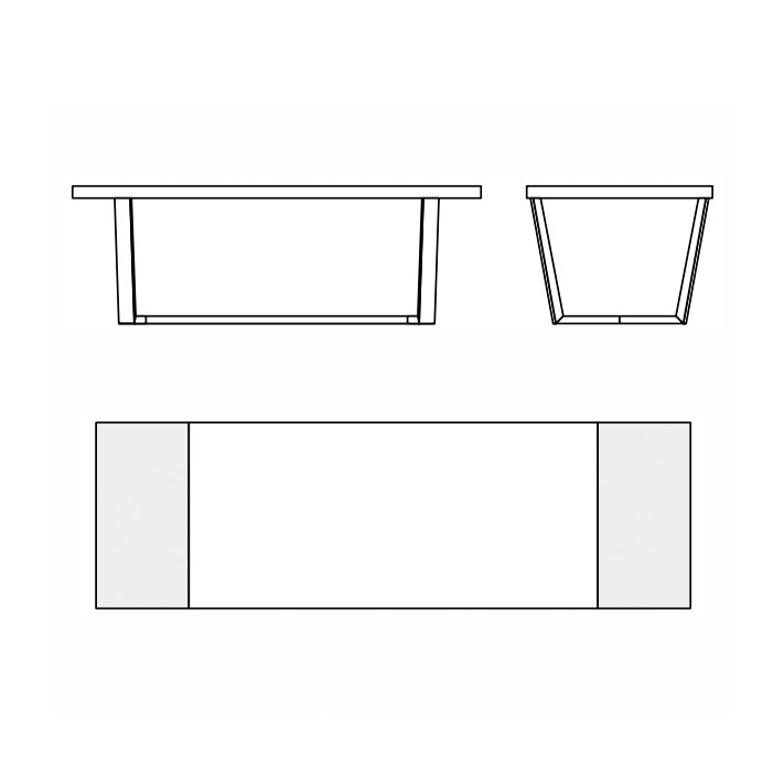 Прямоугольный раздвижной обеденный стол на деревянном каркасе. Стол оснащен двумя боковыми вставками 50 см. Уникальный дизайн стола характеризуется столешницей и вставками значительной толщины, а также особым вариантом основания, в котором наклонные ножки соединяются в нижней части.