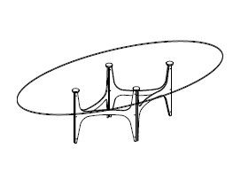 Овальный обеденный стол выполнен в современном стиле. Металлические ножки дополнены мраморной столешницей.