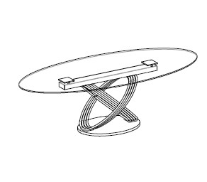 Овальный обеденный стол выполнен в современном стиле. Металлические двухцветные ножки дополнены лакированной столешницей.