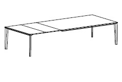 Прямоугольный обеденный стол выполнен в современном стиле. Металлические ножки дополнены шпонированной столешницей.