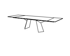 Обеденный раздвижной стол выполнен в современном стиле. Металлические ножки дополнены керамической столешницей.